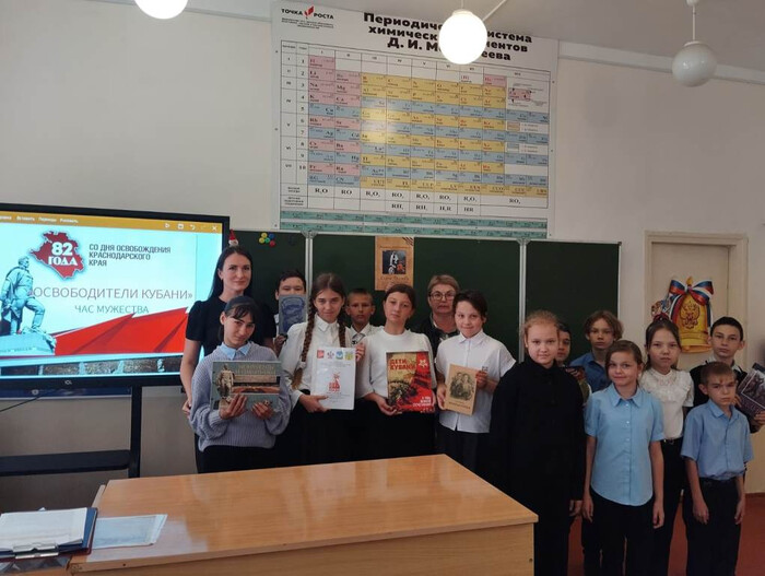 Урок мужества «Освободители Кубани» 9 октября к 82-летию освобождения Краснодарского края от немецко-фашистских захватчиков и окончания битвы за Кавказ, в Октябрьской детской библиотеке, филиал № 2 был проведен урок мужества «Освободители Кубани». Участниками мероприятия стали учащиеся 5 классов МБОУ СОШ № 6. Ребята узнали много нового о событиях в период оккупации немецкими захватчиками родного края, об ожесточённых боях, проходивших в 1943 году на Кубанской земле, о вкладе жителей Кубани в Великую Победу. С помощью презентации ребята увидели документальные фотографии тех дней, памятники воинам – освободителям, познакомились с литературой по данной тематике, читали стихотворение Н. Веденяпиной «Освободителям Кубани». Особое внимание было обращено на героический вклад в победу над врагом жителей Крыловского района и ст. Октябрьской. Учащиеся познакомились с Героями Советского Союза Крыловского района, чьи имена увековечены в названиях улиц и школ Крыловского района, приняли участие в тематической викторине. #библиотекиОктябрьской #82ОсвобождениеКубани |